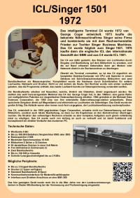 Der Singer/ICL 1501 war das erste Exponat, dem wir uns für das Computeum gewidmet haben. Hans drückte mir im Lager ein in Plastikfolie gewickeltes Gerät in die Arme mit den Worten: “Nimm’s mal mit, ist ein ICL”.